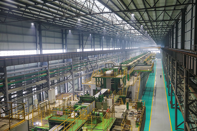 河北兆建金屬制品有限公司始建于2010年11月,注冊資金1億元人民幣,占地面積70萬平方米,總投資為25.9億元,年生產(chǎn)能力320萬噸(其中:軋硬產(chǎn)品120萬噸、鍍鋅產(chǎn)品120萬噸,彩涂產(chǎn)品80萬噸)。專業(yè)生產(chǎn)冷軋板、鍍鋅板、鍍鋁鋅板、印花板、冷覆膜板、熱覆膜板、建筑彩涂板、家電彩涂板。選用設(shè)備力求高起點(diǎn)、高水平和高質(zhì)量,打造國際一流水平的設(shè)備生產(chǎn)線,具備生產(chǎn)周期短、效率高、產(chǎn)品精度高、質(zhì)量好和能耗等優(yōu)點(diǎn)。